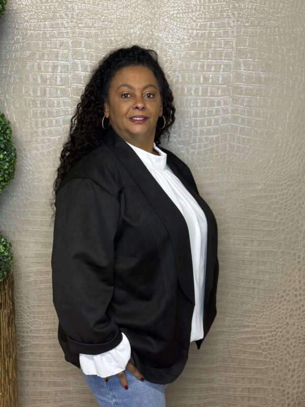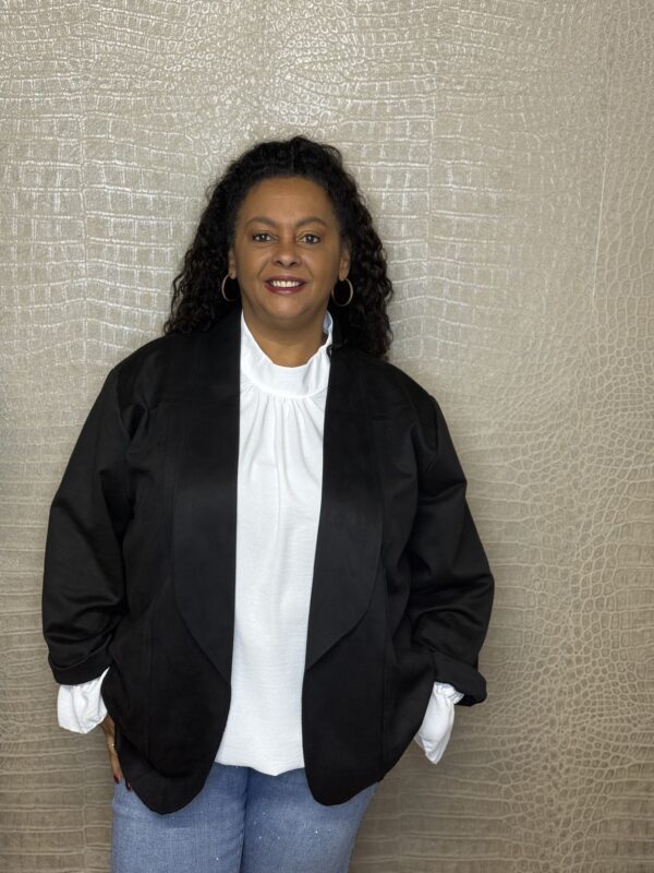 Het colbert is verkrijgbaar in verschillende kleurtjes en heeft een mooie, ruimvallende pasvorm. Het model is één maaten kan comfortabel worden gedragen tot en met maat 50/52. Met een borstwijdte (oksel tot oksel) van ca. 75 cm en een lengte van ca. 78 cm valt het colbert flatterend en soepel. De stretch in de stof zorgt voor extra draagcomfort.