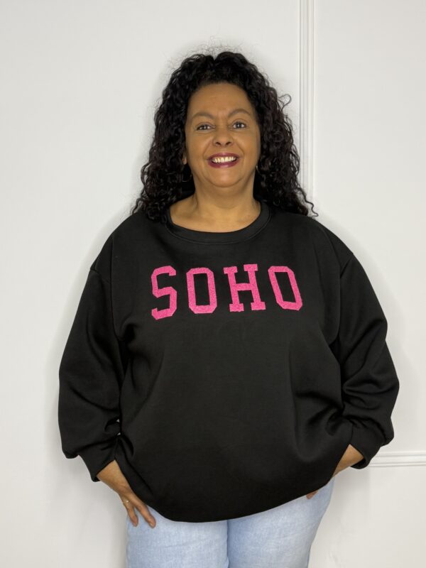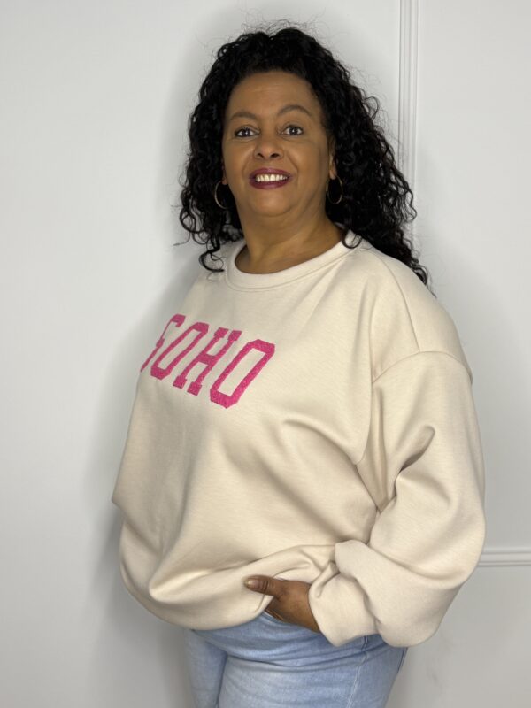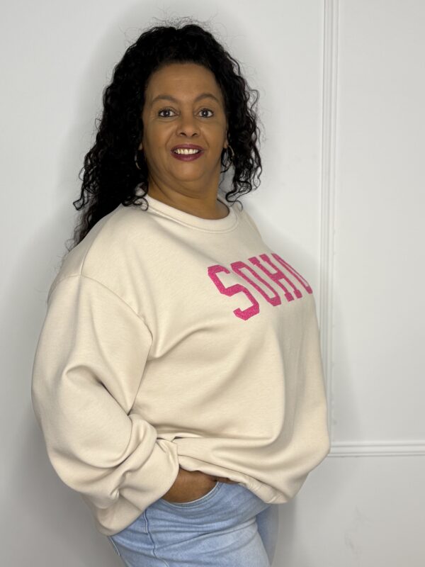 Onze SOHO sweater straalt een moderne, urban vibe uit en is perfect voor een stijlvolle casual look. De “SOHO” opdruk geeft de sweater een trendy uitstraling en maakt ’m een echte must-have in je garderobe. Verkrijgbaar in verschillende kleuren, zodat je altijd jouw favoriet vindt 💕
