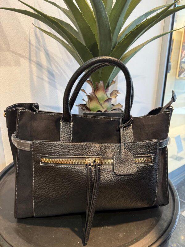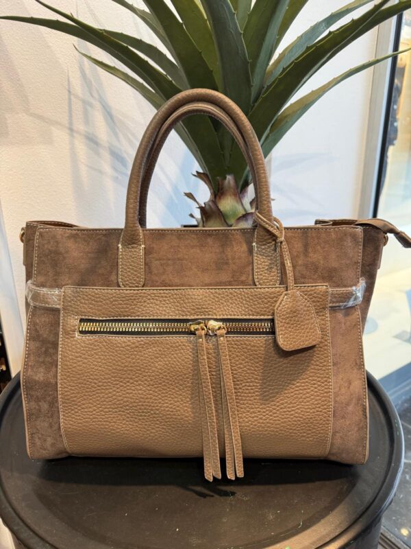 Deze elegante tas van suedine is een echte must-have! Dankzij de praktische ritssluiting neem je jouw essentials veilig en stijlvol overal mee naartoe.