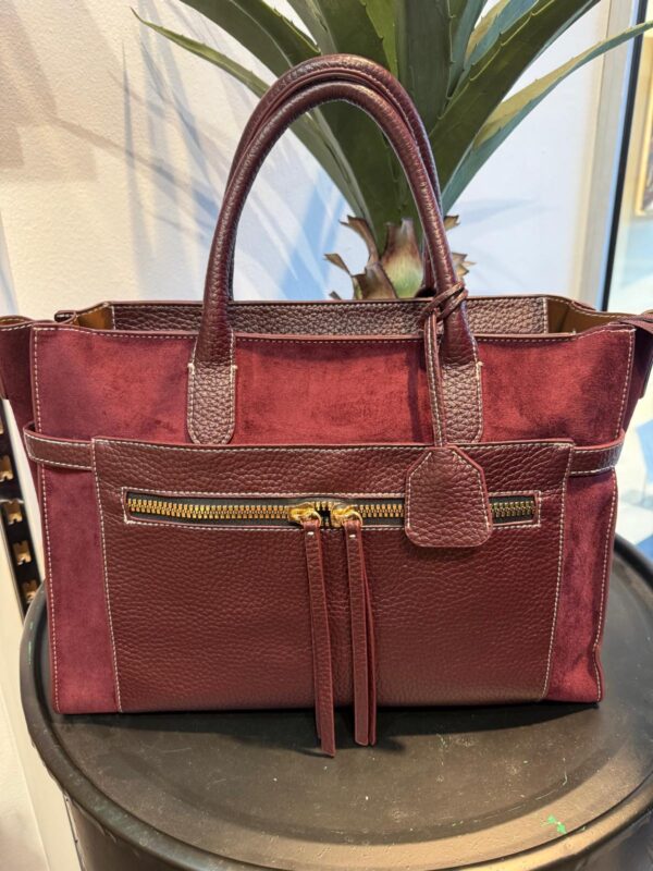 De tas is verkrijgbaar in de kleuren taupe, bordeaux, zwart en groen – ideaal om te combineren met elke outfit, van casual tot chic. Het zachte suedine geeft de tas een luxe uitstraling, terwijl het tijdloze design ervoor zorgt dat je hem eindeloos kunt dragen.