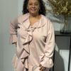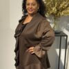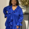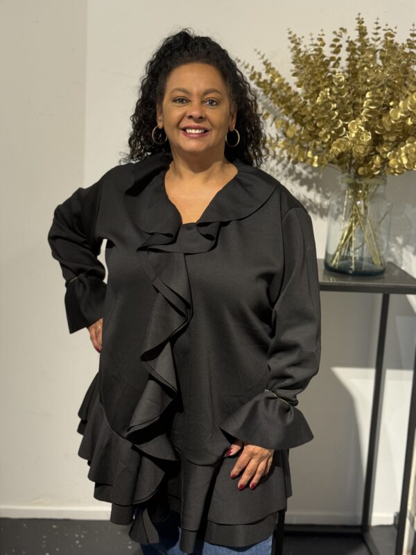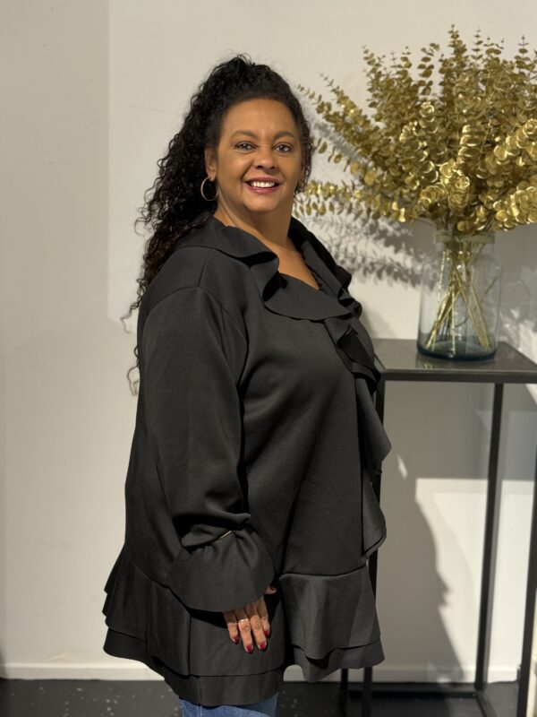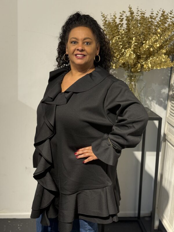 Deze elegante top met roezel is een stijlvolle en comfortabele toevoeging aan je garderobe. De roezeldetails geven de top een vrouwelijke en speelse uitstraling, terwijl het model makkelijk te combineren is met zowel een jeans als een nette broek of rok.