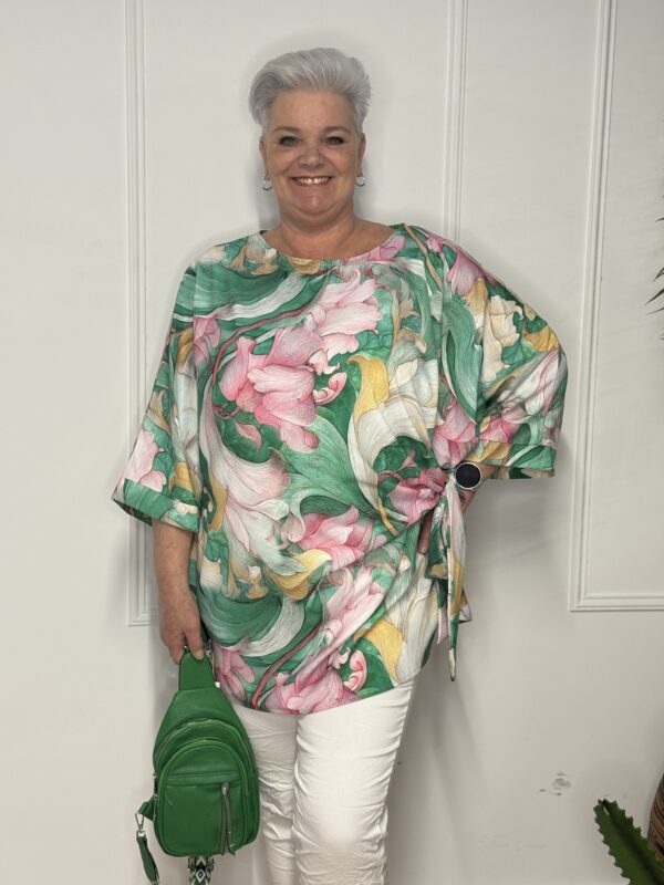 Deze mooie top met bloemprint is een echte eyecatcher in je garderobe. De speelse strik aan de zijkant geeft de top een elegante en flatterende uitstraling, terwijl de print zorgt voor een frisse en vrouwelijke look. Perfect voor een casual dag, een etentje of een comfortabele maar stijlvolle outfit 💕