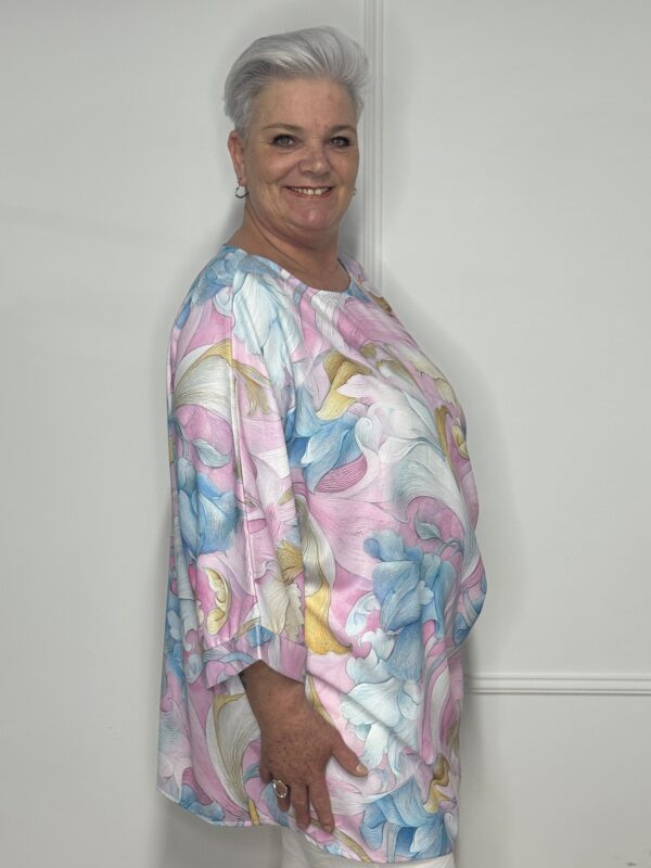 Dankzij het one size model is deze top draagbaar tot en met maat 50/52. De losse pasvorm zorgt ervoor dat hij mooi valt zonder strak te zitten.