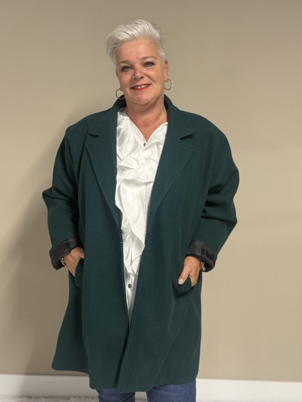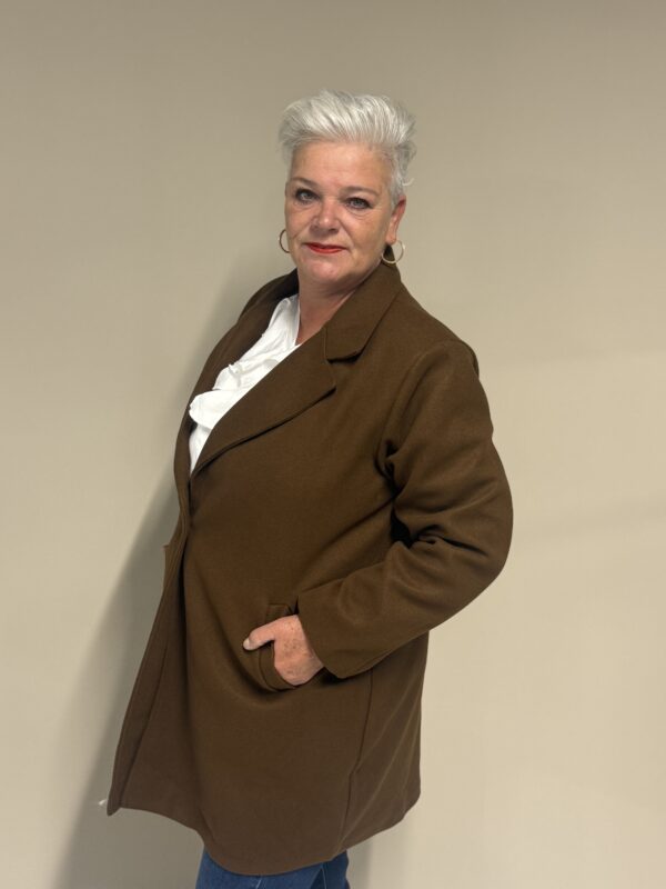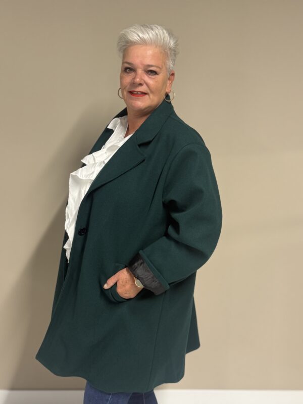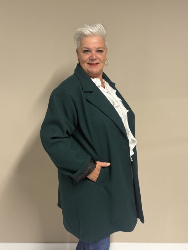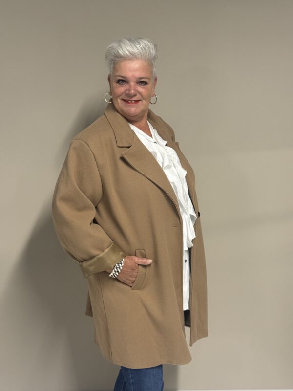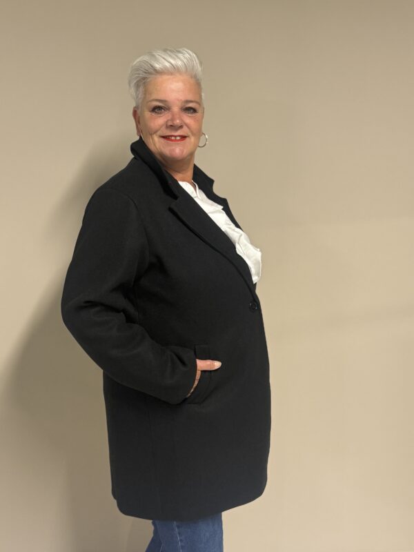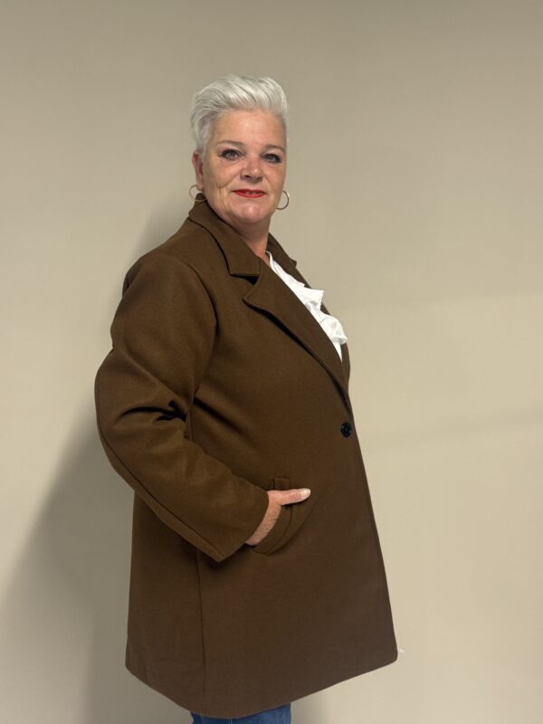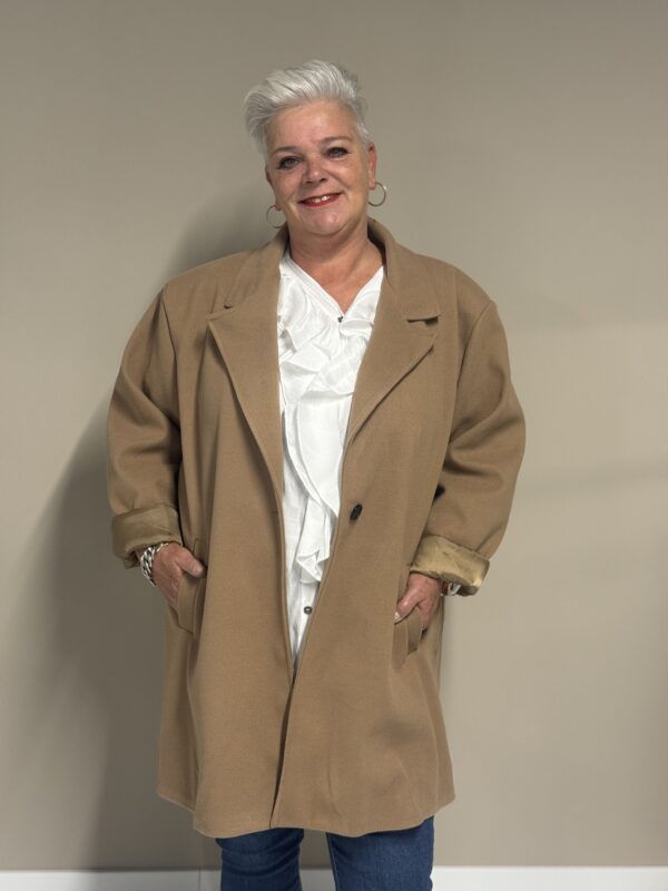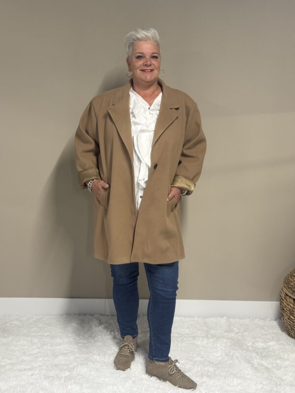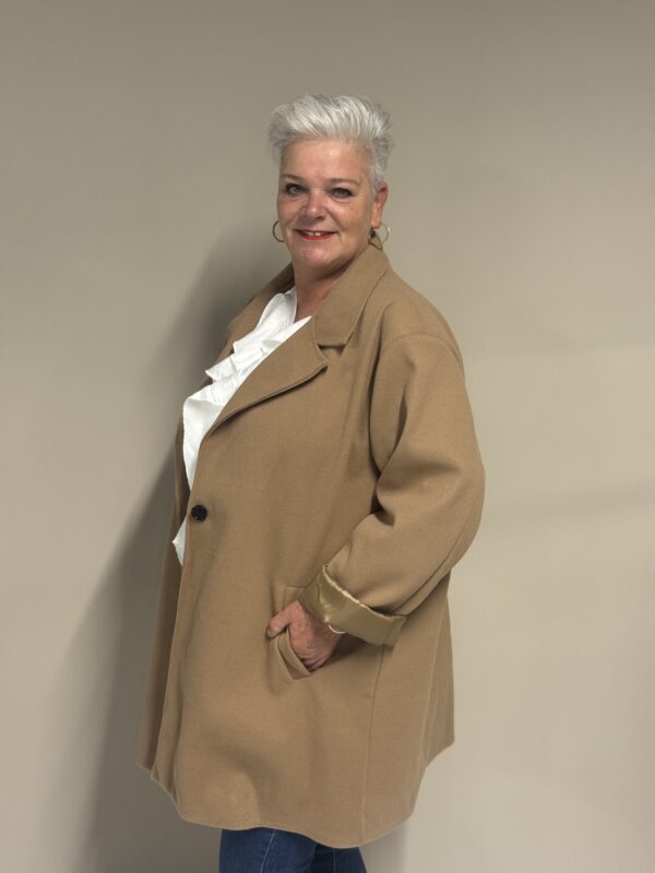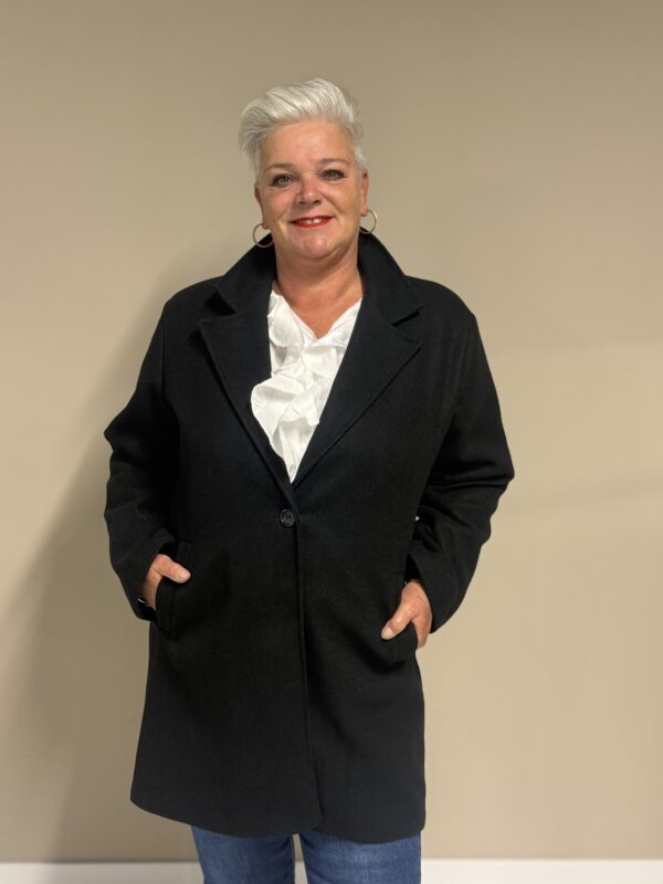 Deze trendy basic coat is een echte musthave voor het nieuwe seizoen! De jas heeft een stijlvolle, tijdloze look en is volledig gevoerd voor extra comfort en warmte. Dankzij het one size model, draagbaar tot en met maat 50/52, heeft deze coat een fijne pasvorm die mooi valt bij elke lichaamsvorm.