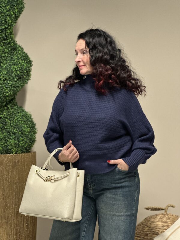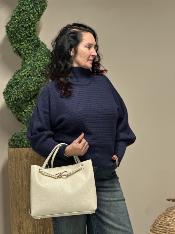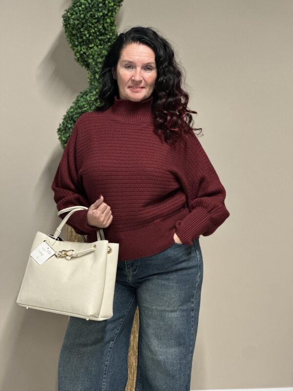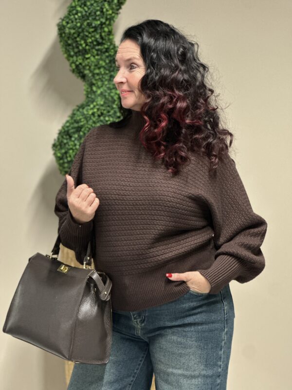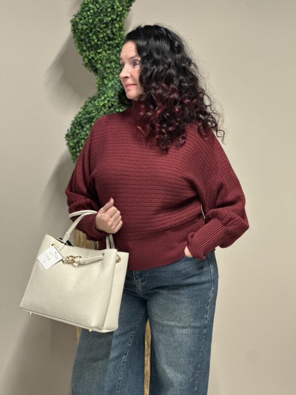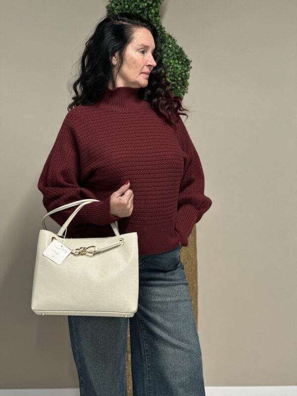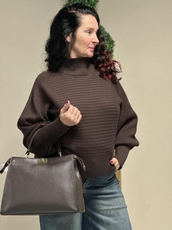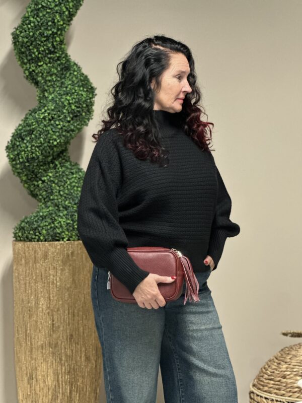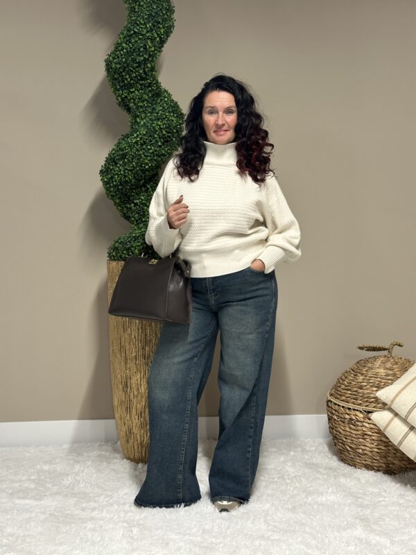 Deze trui is een echte must-have voor je garderobe. De korte turtle neck geeft een moderne, minimalistische uitstraling en zorgt tegelijk voor een extra warmte zonder zwaar aan te voelen. Dankzij de zachte stof en comfortabele pasvorm draag je deze trui moeiteloos zowel casual als gekleed. Deze trui is één maat kan gedragen worden t/m maat 44