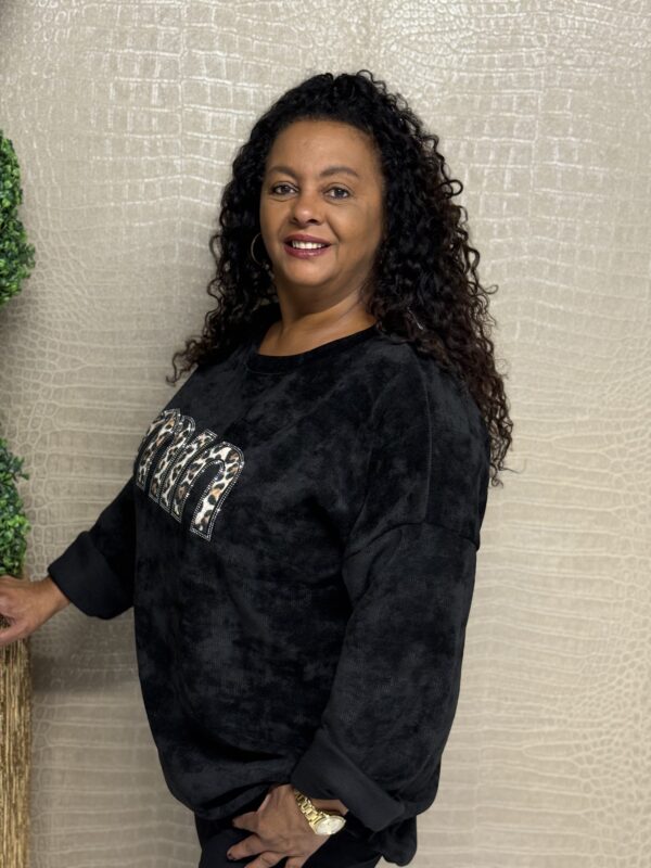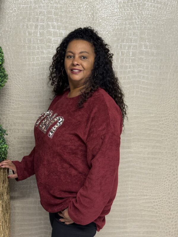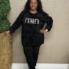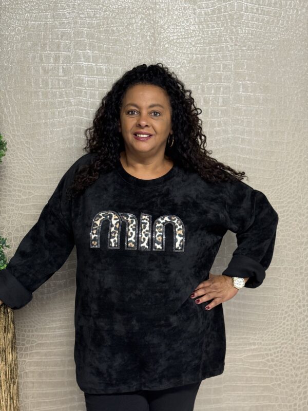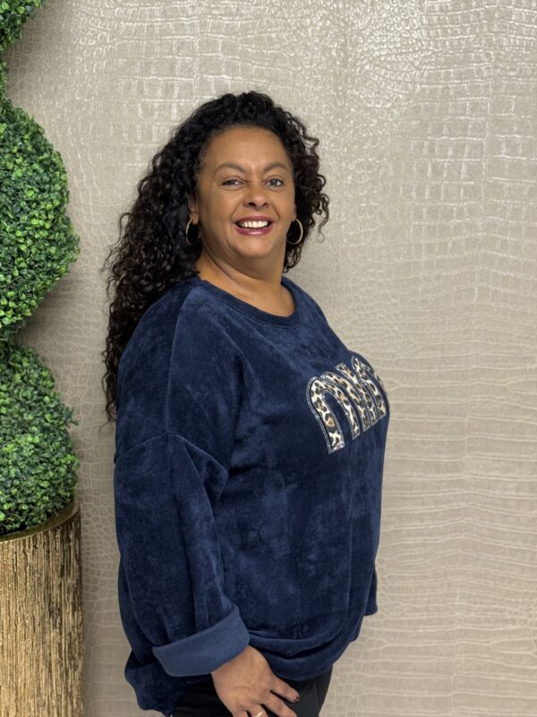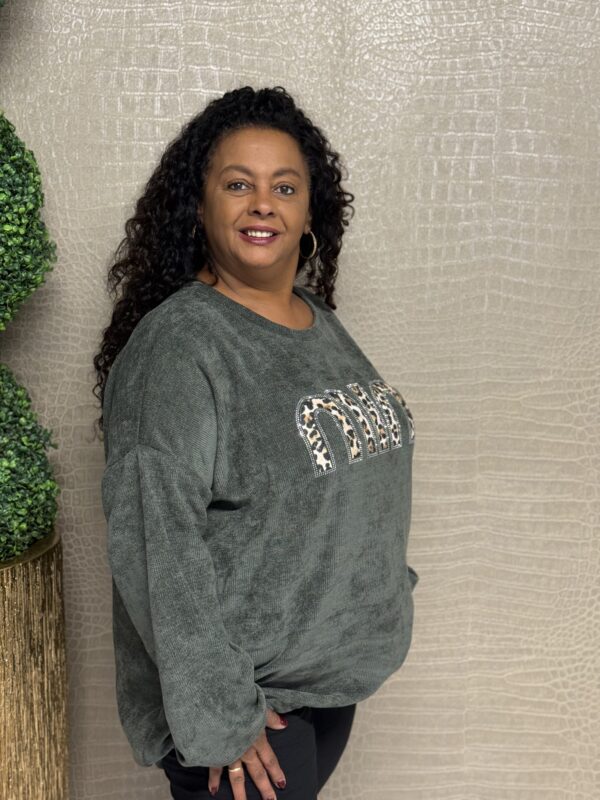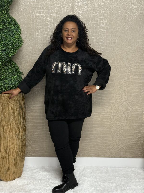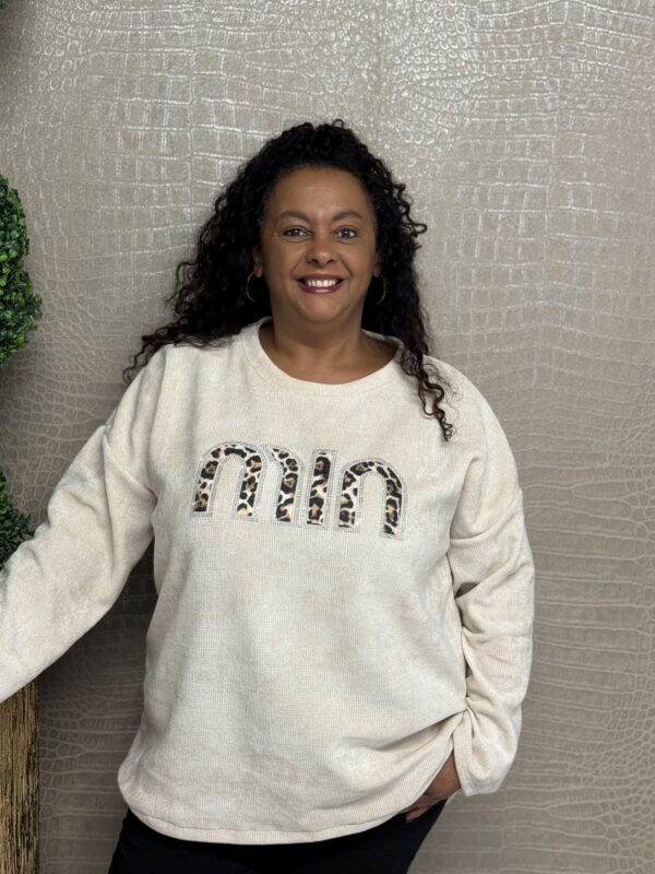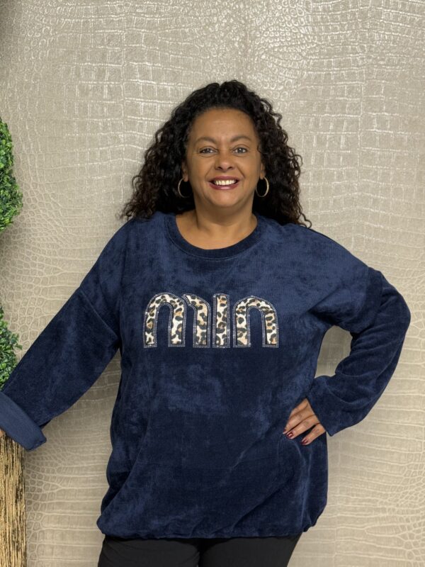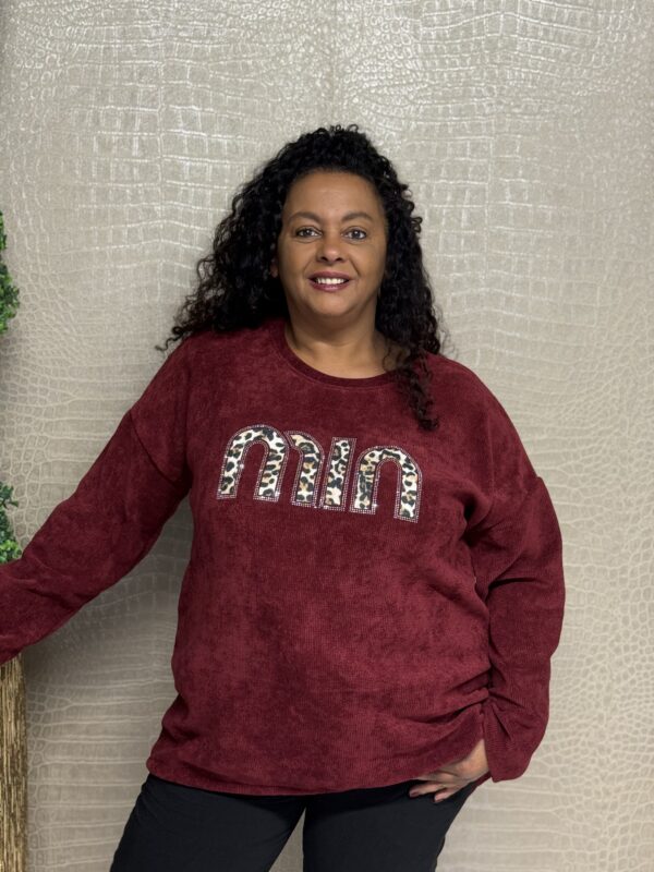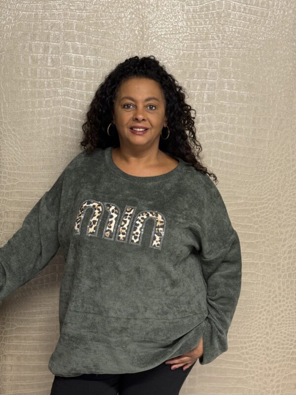 Deze trui met aanrijgkoordje en stijlvolle tekst “Min” is de perfecte mix van comfort en trendy uitstraling! Dankzij het verstelbare koordje kun je de pasvorm eenvoudig aanpassen voor een speels of getailleerd effect. De zachte stof voelt heerlijk aan en maakt deze trui ideaal voor zowel casual als modieuze looks.