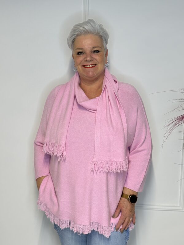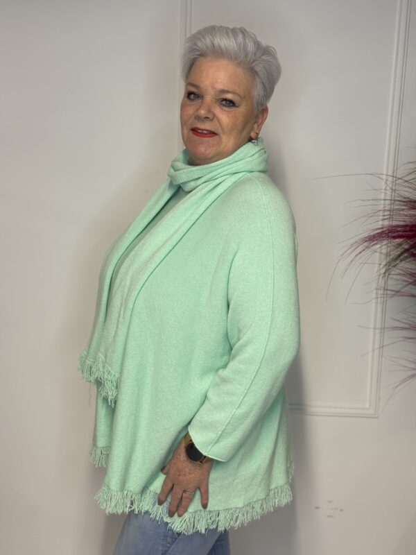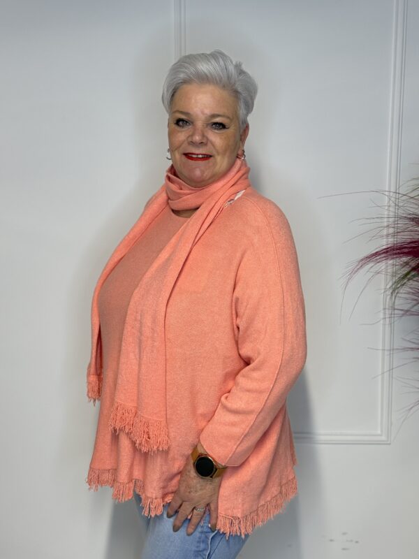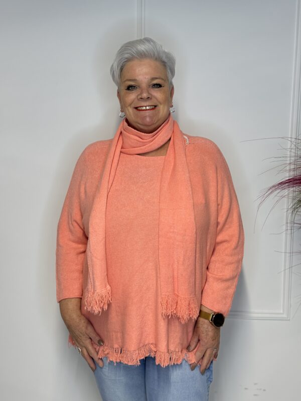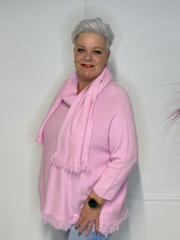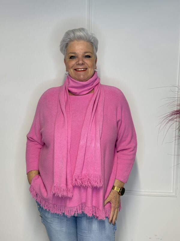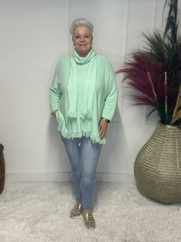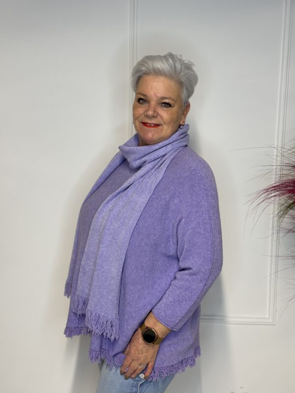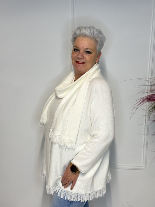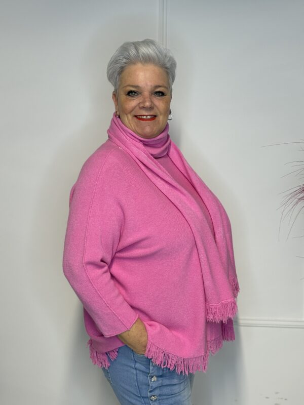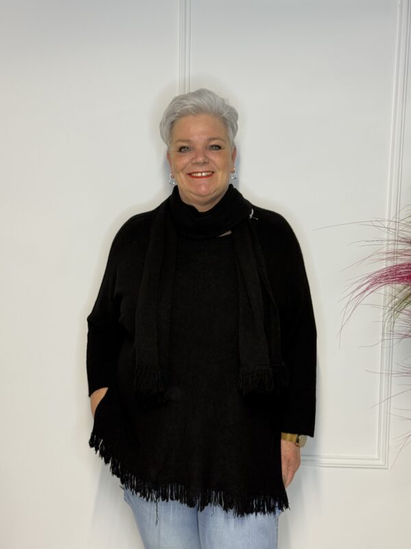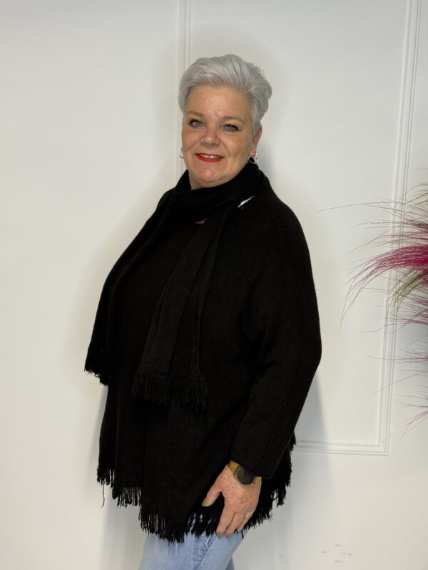 Deze elegante trui met speelse vlindermouwen geeft je outfit direct een vrouwelijke en moderne uitstraling. De bijpassende sjaal maakt de look helemaal af en zorgt voor extra warmte én stijl. Perfect voor zowel casual als geklede outfits.