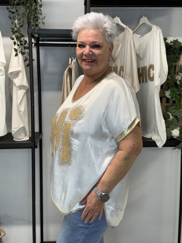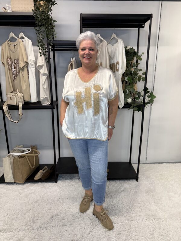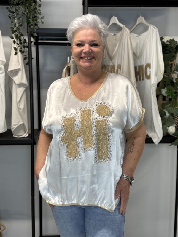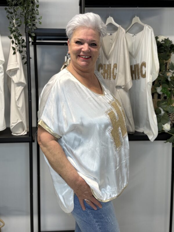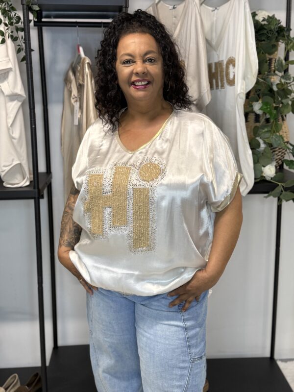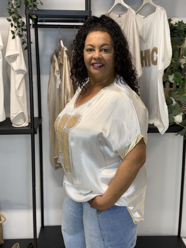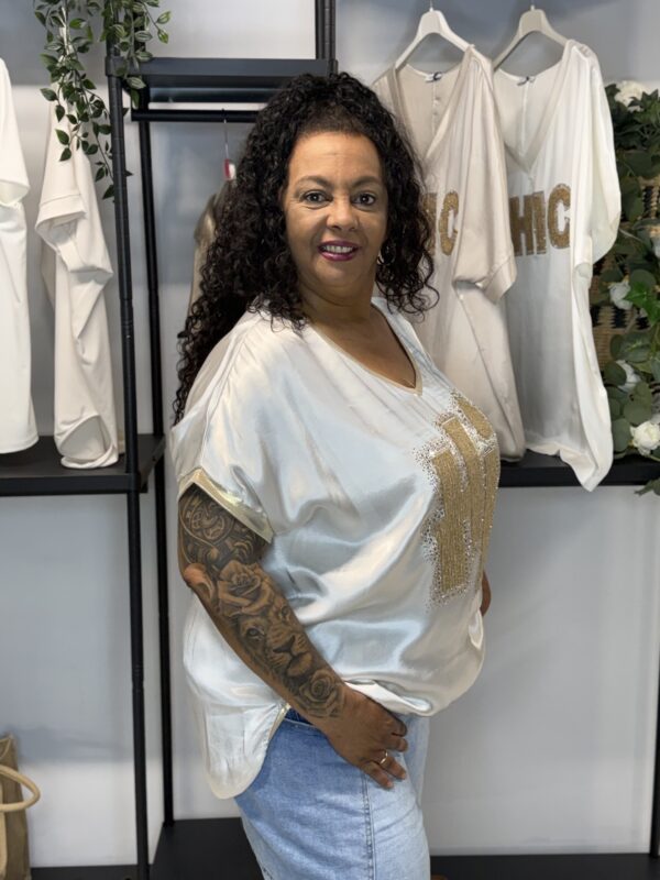 Deze viscose top met gouden “Sparkling” letters geeft jouw outfit direct een luxe en trendy uitstraling 💖 De subtiele glans zorgt voor nét dat beetje extra!