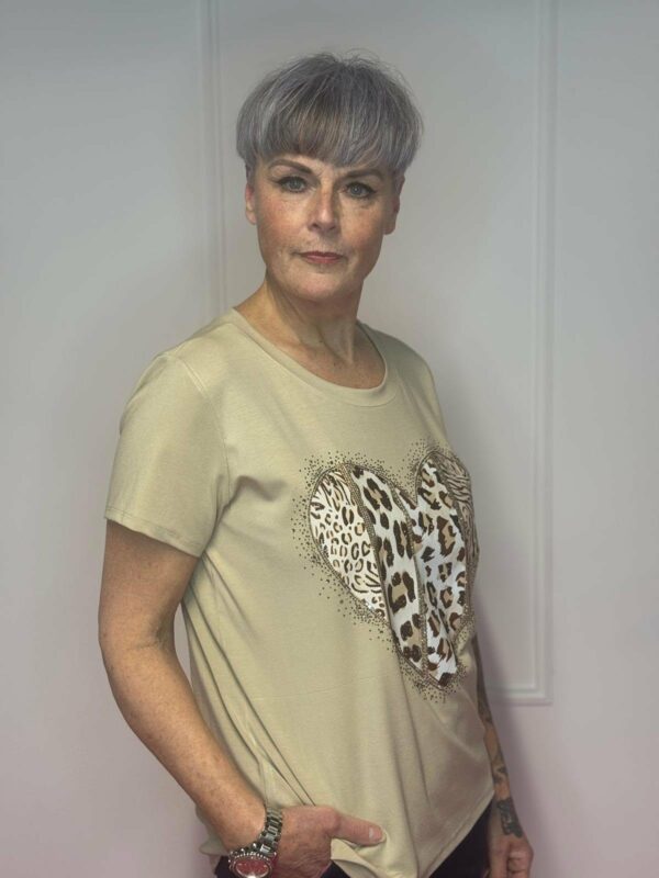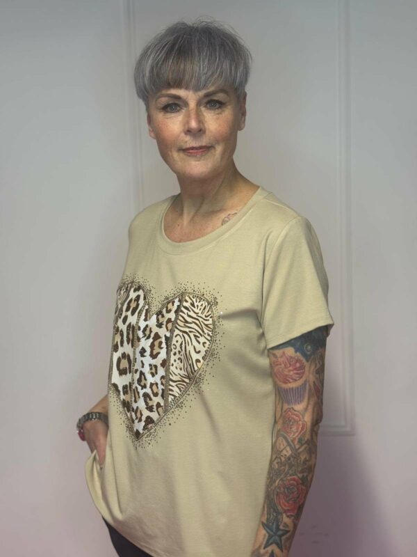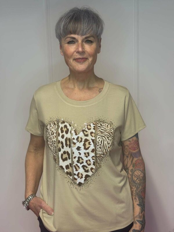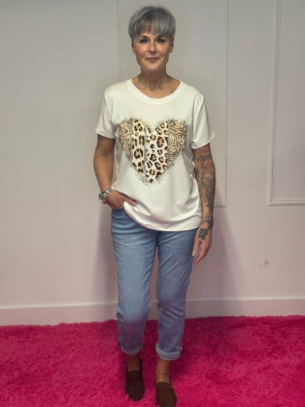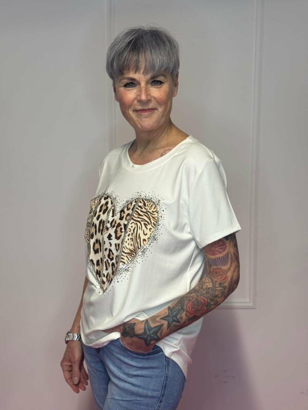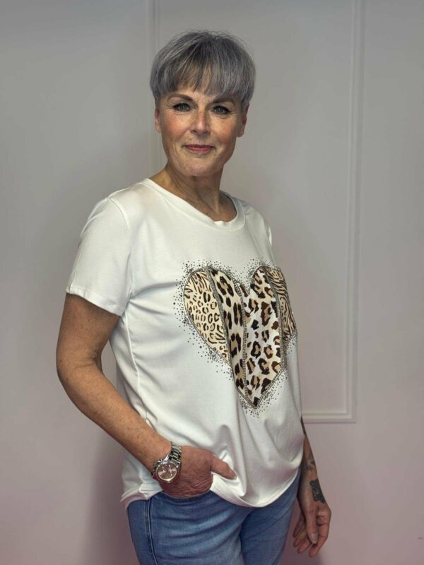 Charmant en comfortabel: deze zachte viscose top met hartdetail is verkrijgbaar in verschillende kleuren en geschikt voor maat 36 tot 40. Gemaakt van 95% viscose en 5% elastan voor een perfecte pasvorm en lichte stretch.