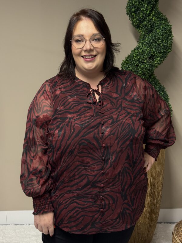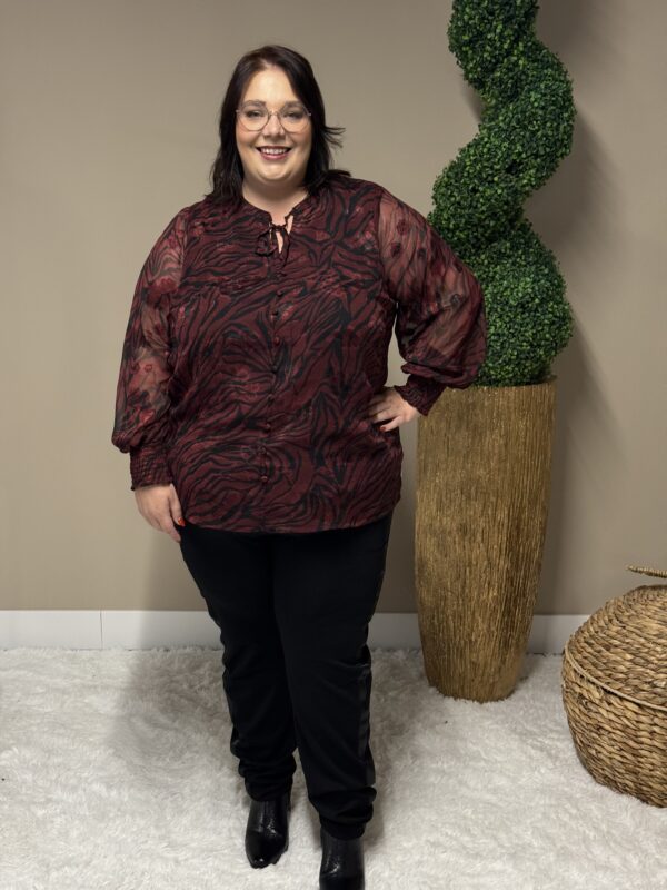 Deze blouse van Zhenzi is speciaal ontworpen voor een perfecte pasvorm en optimaal draagcomfort. De luchtige stof en elegante snit zorgen voor een vrouwelijke uitstraling die bij elke gelegenheid past. Verkrijgbaar in de maten 42/44 t/m 54/56, zodat je altijd de juiste fit vindt.
