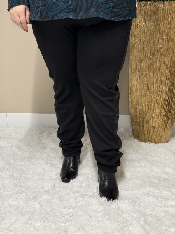 Deze pants van Zhenzi biedt het perfecte evenwicht tussen comfort en stijl. De elastische tailleband zorgt voor een fijne pasvorm, terwijl de bies langs de pijp een sportief en trendy accent toevoegt. Verkrijgbaar in de maten 42/44 t/m 54/56, zodat je altijd de ideale fit vindt.
