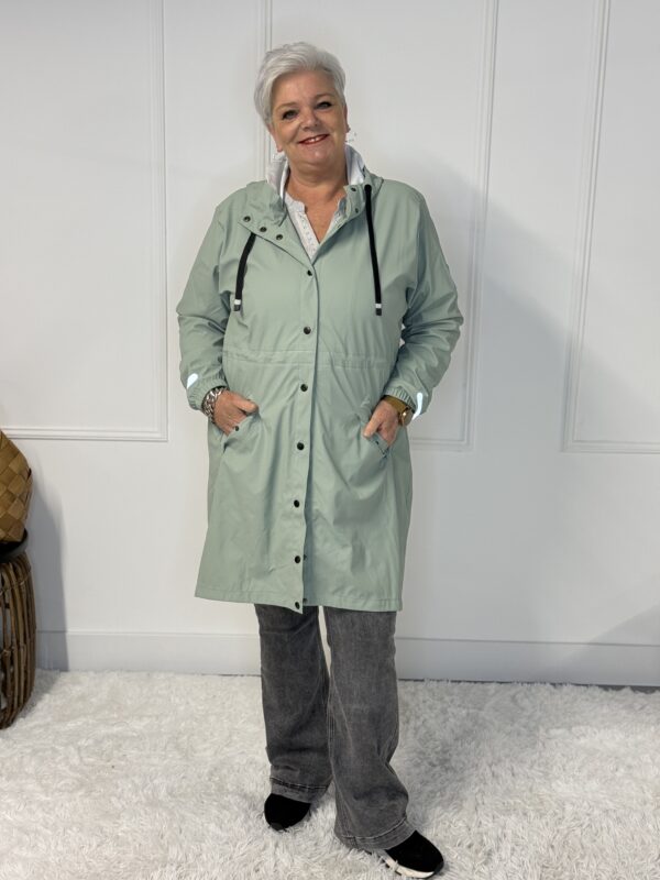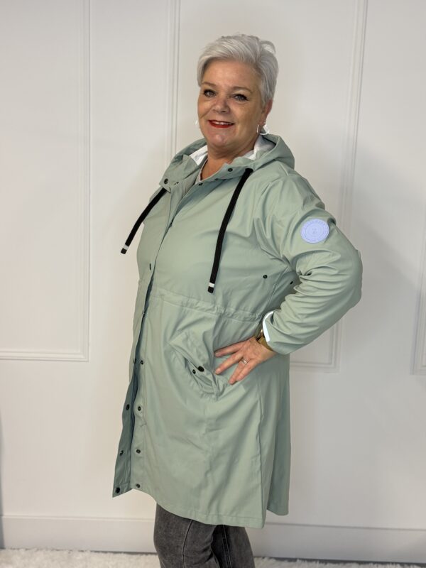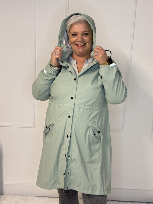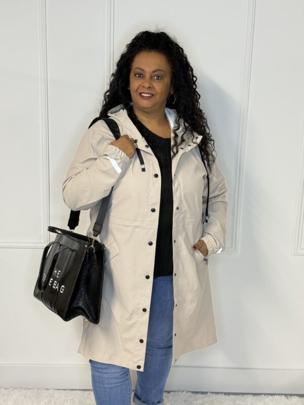 Deze Zhenzi regenjas is perfect voor natte dagen! Verkrijgbaar in de kleuren zand, groen en zwart, zodat je altijd een jas hebt die bij jouw outfit past. De jas is waterafstotend, licht van gewicht en heeft een comfortabele pasvorm, waardoor hij ideaal is voor dagelijks gebruik. Verkrijgbaar in de maten 42/44 t/m 54/56.