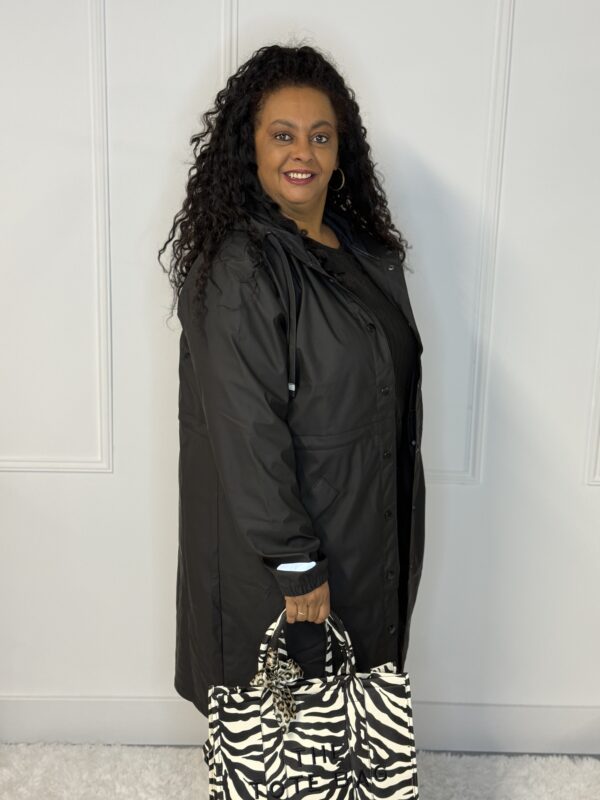 Draag de regenjas over een casual outfit of kantoorlook – praktisch én stijlvol! Een musthave voor elk seizoen. 🌧️✨